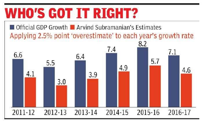 India Business News: India's gross domestic product growth rate has been overstated by about 2.5 percentage points per year post 2011, former chief economic adviser Arvind